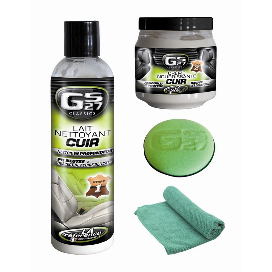 Tout les produits sont a. 200ml de savon, 200ml de lait, 1 brosse. Ce kit nettoyage cuir est un kit clé en main pour l'entretien de votre cuir.